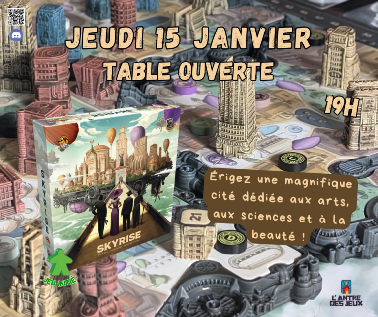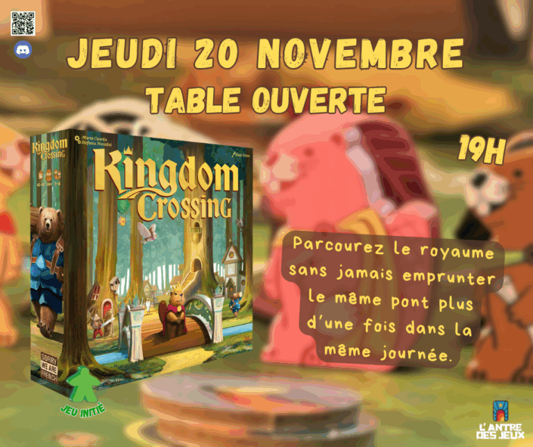 Attention, les mardi soir nous privilégions une ambiance calme, propice à la découverte de nos jeux de plateaux, et les mercredi l’Antre est réservée à nos évènements !