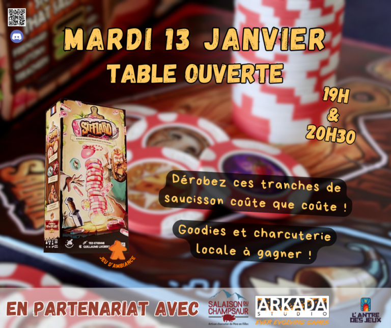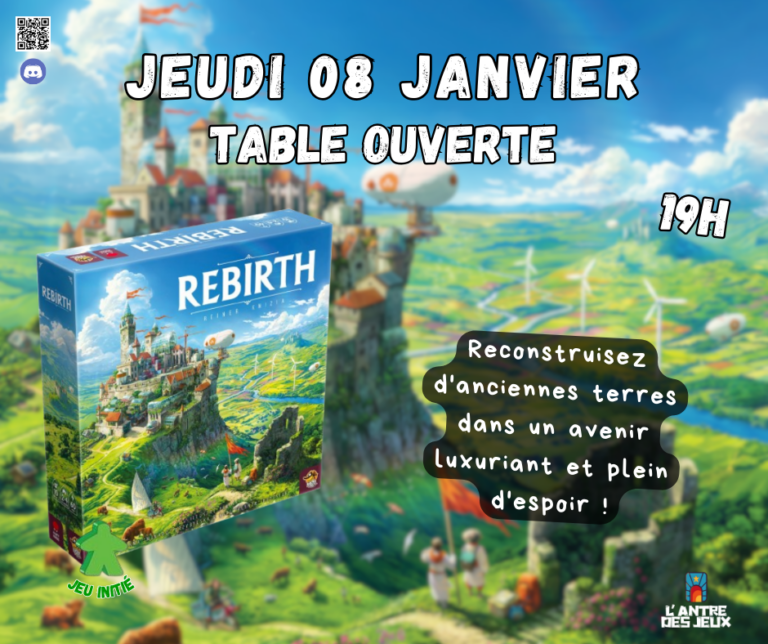 Tous les jeudi soir une table ouverte d’une nouveauté est proposée pour les joueurs plus aguerris. Renseignez-vous grâce à notre serveur Discord ou en jetant un œil à notre agenda.