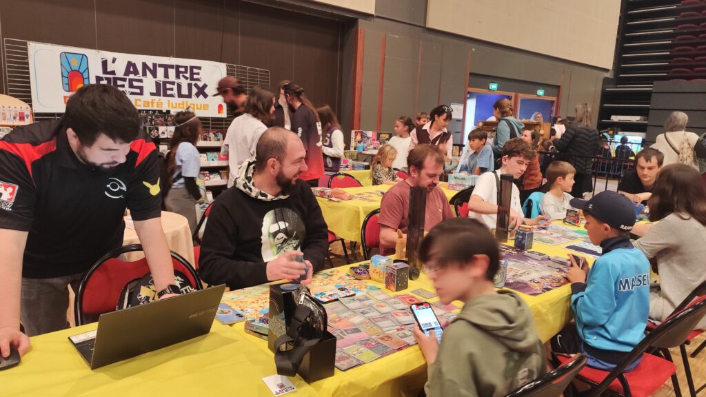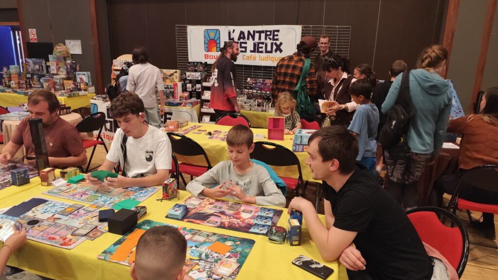 Samedi 18 Octobre s’est tenu le Manga’p, salon des univers manga et de l’imaginaire, et l’équipe de l’Antre des jeux était de la partie ! Au programme initiation aux TCG , découvertes de jeux pour petits et grands, tout en profitant de la formidable ambiance du lieu .