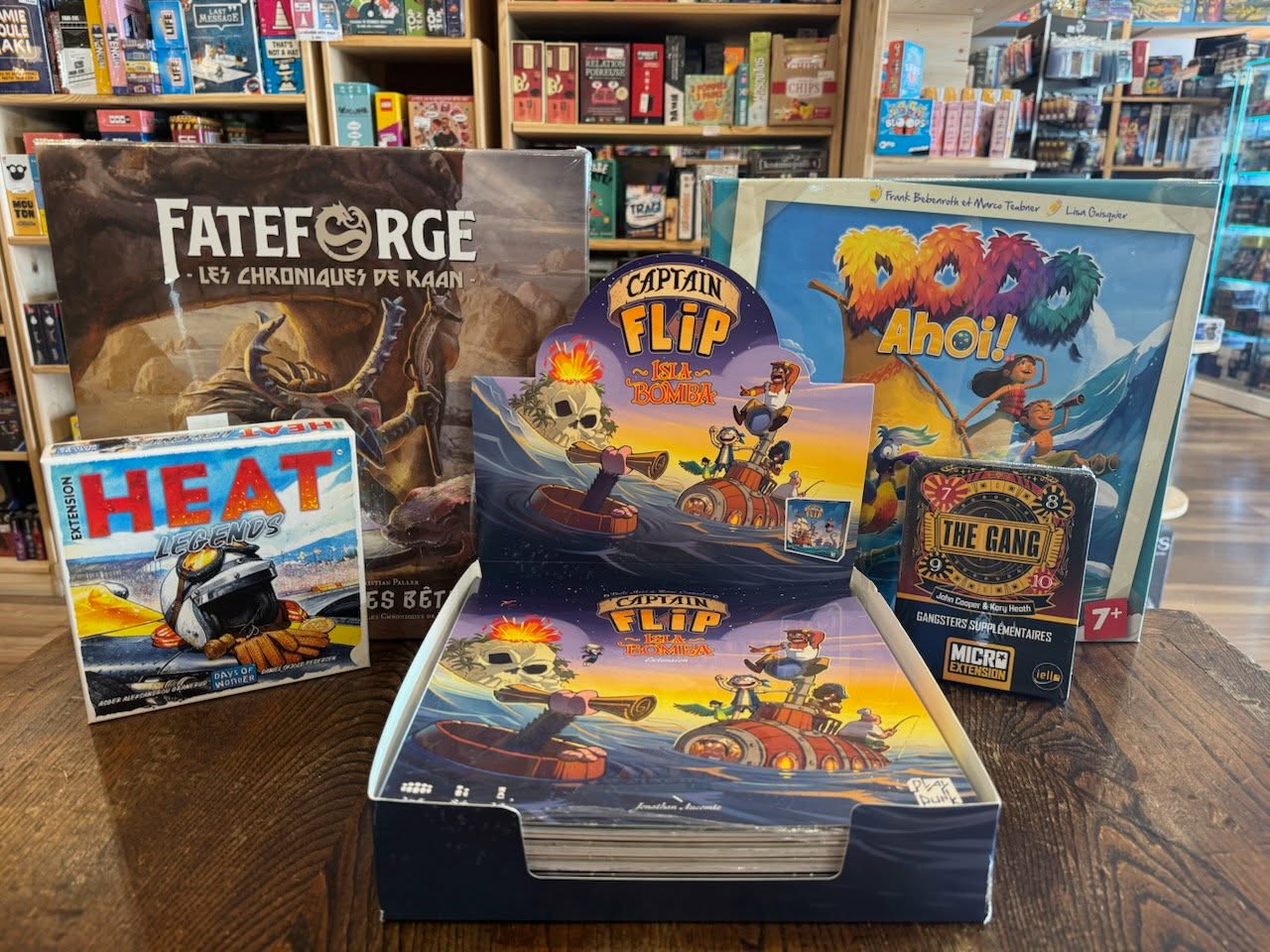 Captain Flip, le célèbre jeu de retournement de tuile pour optimiser le recrutement de son équipage pirate, à elle aussi son extension :Isla Bomba ! Elle ajoute 4 nouveau plateaux mais aussi 5 jetons cartes au trésor, permettant ainsi de renouveler les parties tout en gardant les mêmes tuiles que le jeu de base.