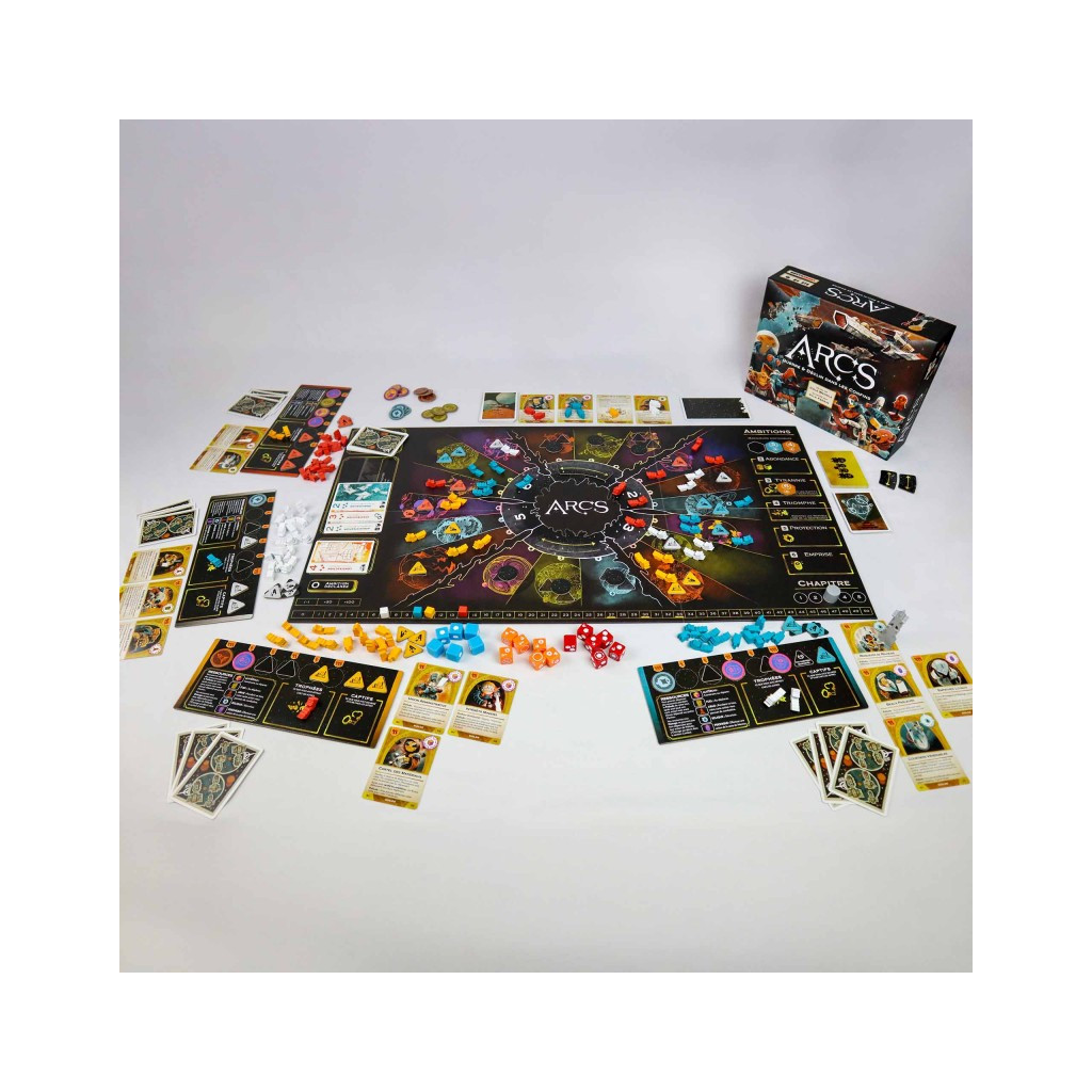 Contient une centaine de navires et d’agents en bois, 18 dés gravés personnalisés, un magnifique plateau à six volets et des tonnes de cartes avec plus de 60 illustrations uniques.