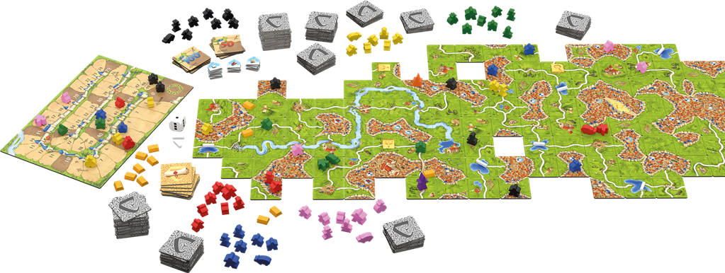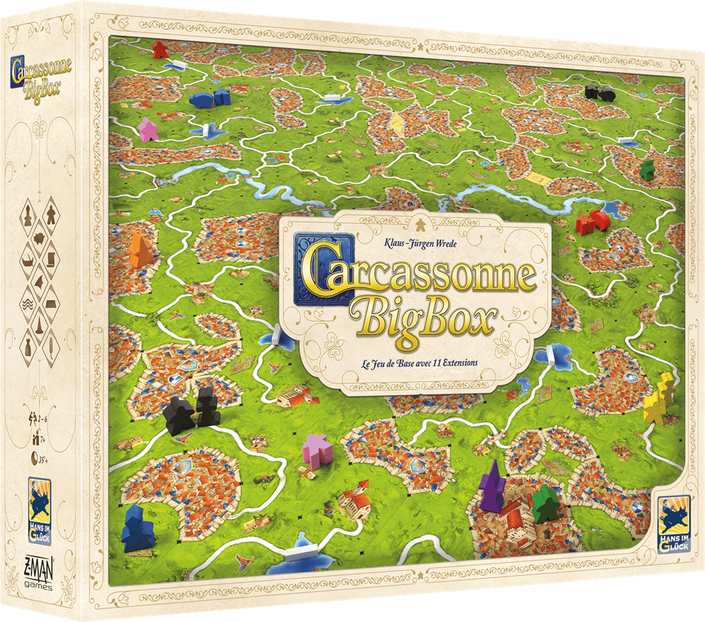 En plus du jeu de base, cette Big Box contient 11 extensions, compatibles entre elles, pour enrichir vos parties : La Rivière, L’Abbé, Auberges & Cathédrales, Marchands & Bâtisseurs, Les Ornithoptères, Les Missives, Les Bacs, Les Mines d’Or, Les Maîtres de la Magie, Les Voleurs, Les Agroglyphes.