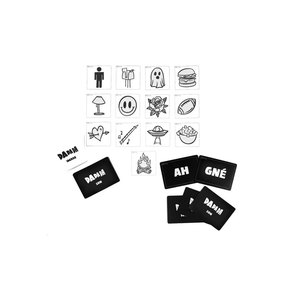 Dadada est un jeu coopératif sur la création d'un langage. Une fois la partie commencée, les joueurs ne peuvent pas utiliser de langues connues. Le défi pour l'équipe ? Communiquer en utilisant exclusivement les sons visibles sur la table.
