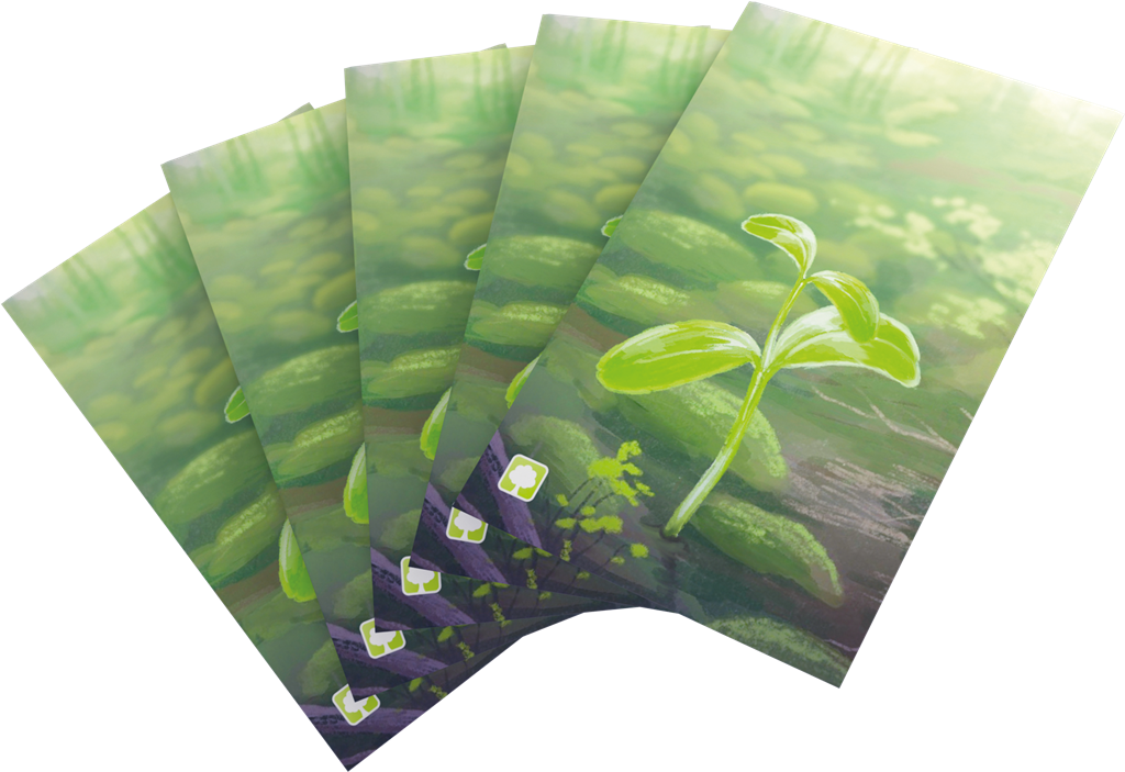 Les illustrations au dos sont identiques au dos des cartes afin de pouvoir les utiliser comme pousse sans avoir à les sortir des sleeves .