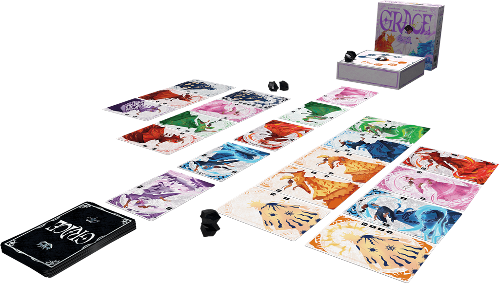 Grâce est un duel stylisé et tactique, porté par des illustrations envoûtantes et un gameplay d’une grande fluidité. Un jeu 2 joueurs intense et poétique !