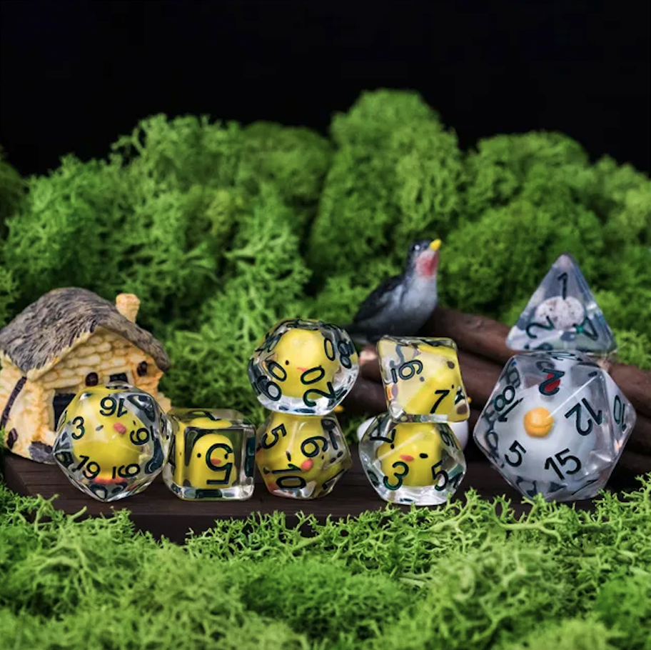 Lot de 8 dés résine – Famille Poule