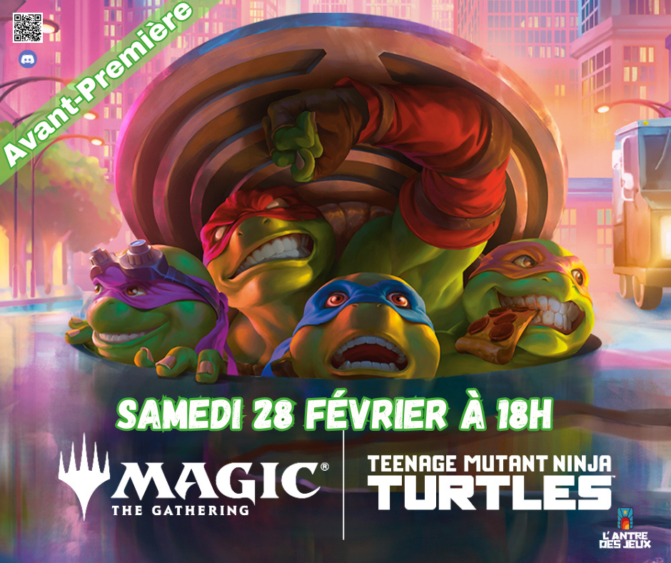 Magic: The Gathering reçoit une quadruple dose de chaos mutagénique, car les Tortues Ninja font leur arrivée sur le champ de bataille ! Collectionnez, construisez et combattez avec une équipe emblématique d’alliés et d’ennemis, issues de quatre décennies de tortue-mania. Prenez le dessus sur les sbires de Shredder avec la toute nouvelle mécanique d’infiltration, puis augmentez la force de votre équipe avec des jetons Mutagène pour triompher et devenir les véritables héros de New York !