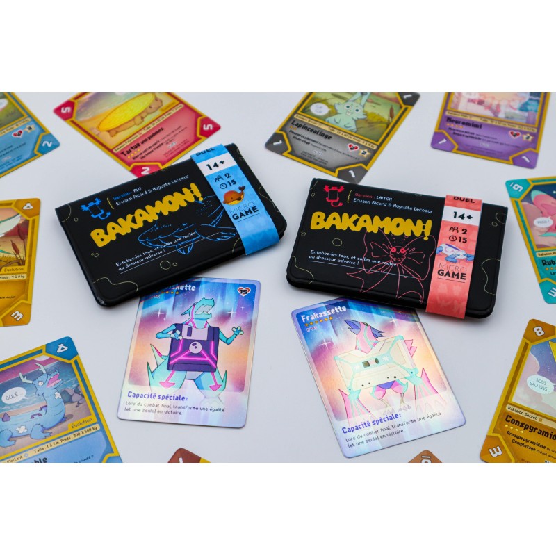 Chaque joueur incarne un dresseur et dispose de Bakamon qu’il va combattre, capturer, faire évoluer et utiliser pour défier son adversaire. Les actions se font en lançant physiquement les cartes sur la table : l’orientation détermine la puissance des attaques. Les Bakamon gagnent de l’expérience, mais s’épuisent après usage, ce qui demande une bonne gestion du timing.