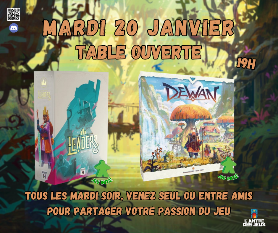 Le mardi est LE rendez-vous des joueurs de jeux de société des Hautes-Alpes, rejoignez nos tables ouvertes de cette semaine : Leaders et Dewan ! Rendez-vous à 19h à l’Antre.